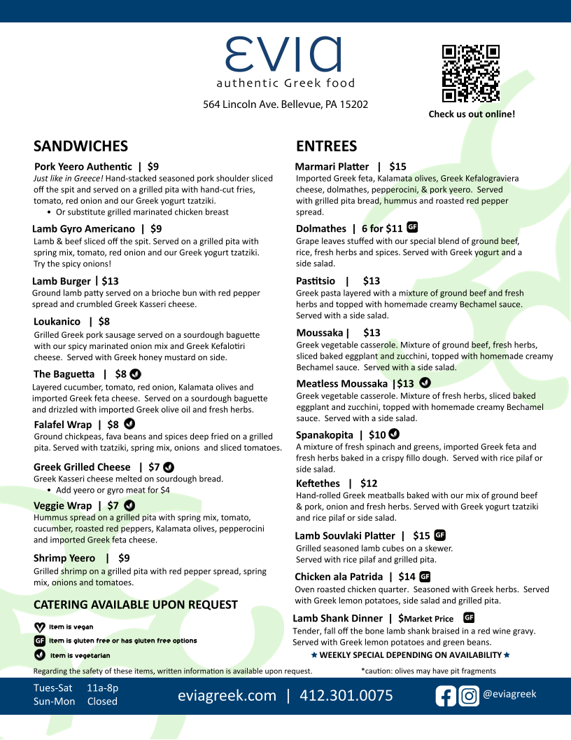 EVIA’s charm lies in its genuine hospitality and thoughtful menu—each bite invites you to savor the rich culinary traditions of Greece with every dish crafted to satisfy and delight.